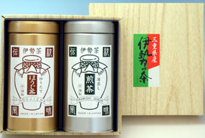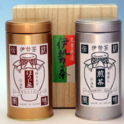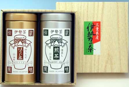 炒りたてほうじ茶・・・120g 深蒸し煎茶・・・120g 三重県産1番茶葉100%使用した煎茶とほうじ茶です。 人気のスクリュー缶を使用し和モダンに仕上げました。 ※のしは無料です。ご注文時、のし欄にご記入下さい