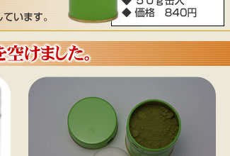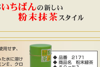 粉末緑茶50g缶入 (商品番号2171) 864円(税込) 賞味期限:商品発送日より1年間。 |