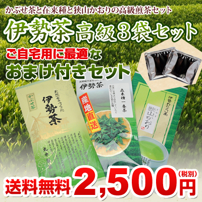 伊勢茶高級3品セット送料無料 自宅用おまけ付き