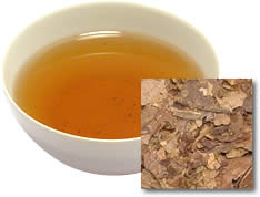 トチュウ科の落葉高木、杜仲の木の葉のお茶。乾燥した葉を茶のように煎じて飲みます。 |